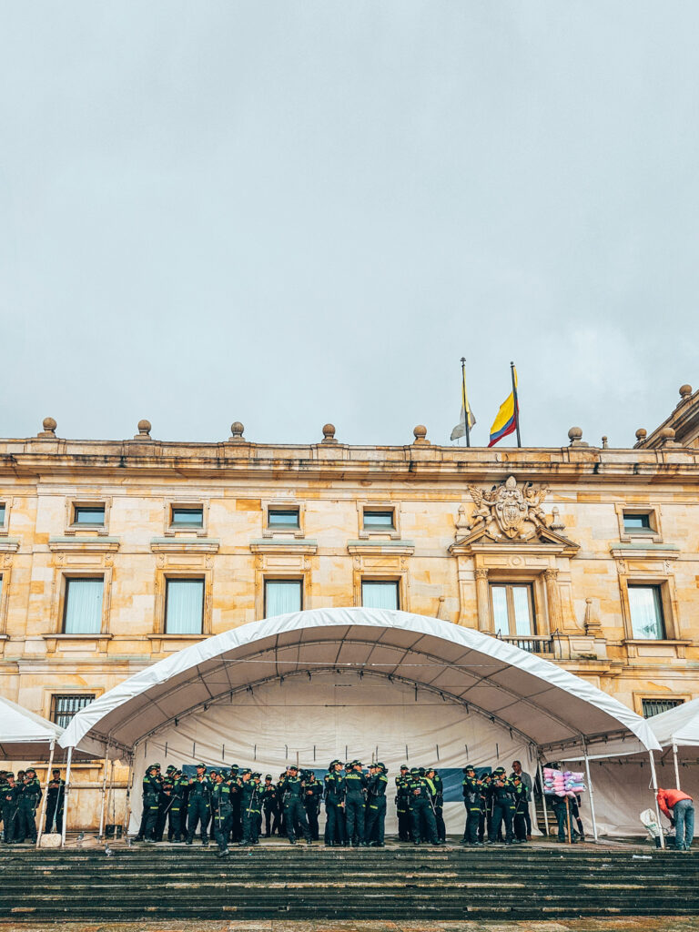 On se dirige ensuite vers la plaza bolivar où un drôle de rassemblement nous attend. Des centaines de policiers, tout juste formés au vue de leur jeune âge, s’agglutinent et gâchent les prises de vue. On ne sait pas vraiment le pourquoi du comment mais toujours est-il que ça grouille de monde.