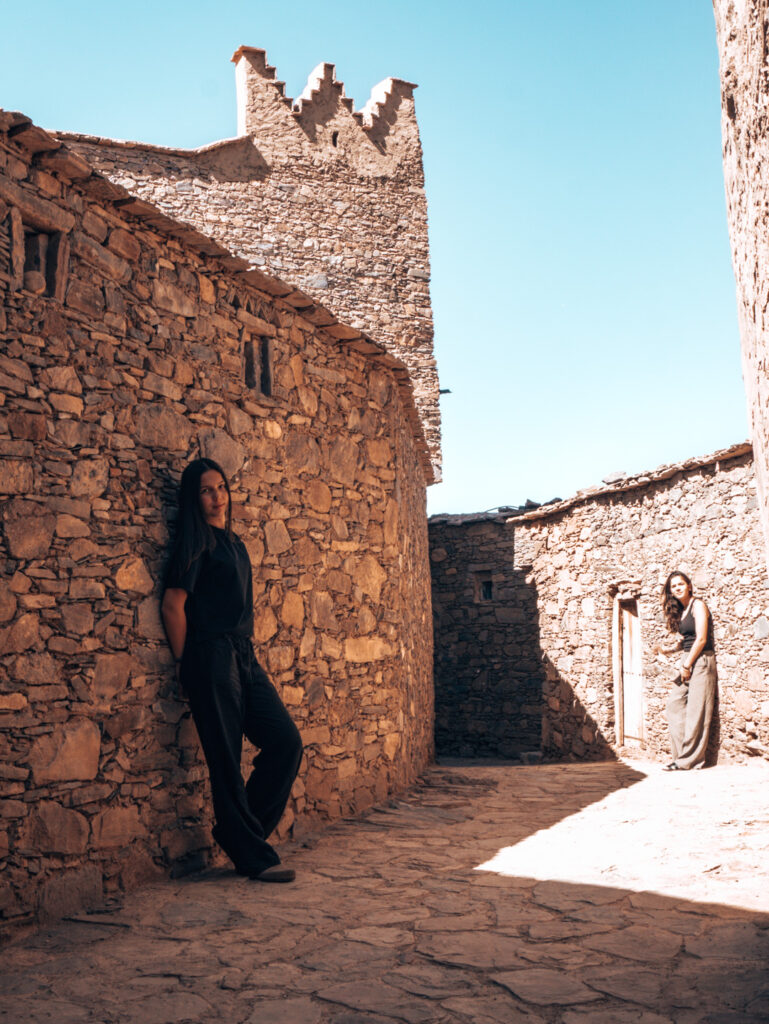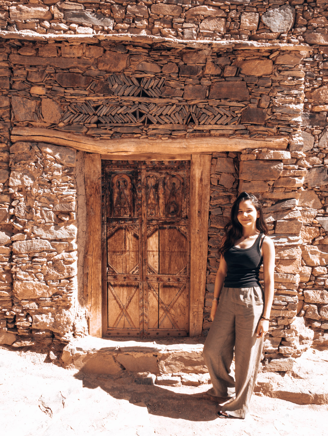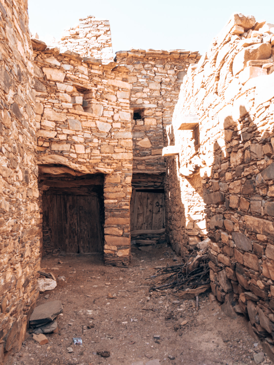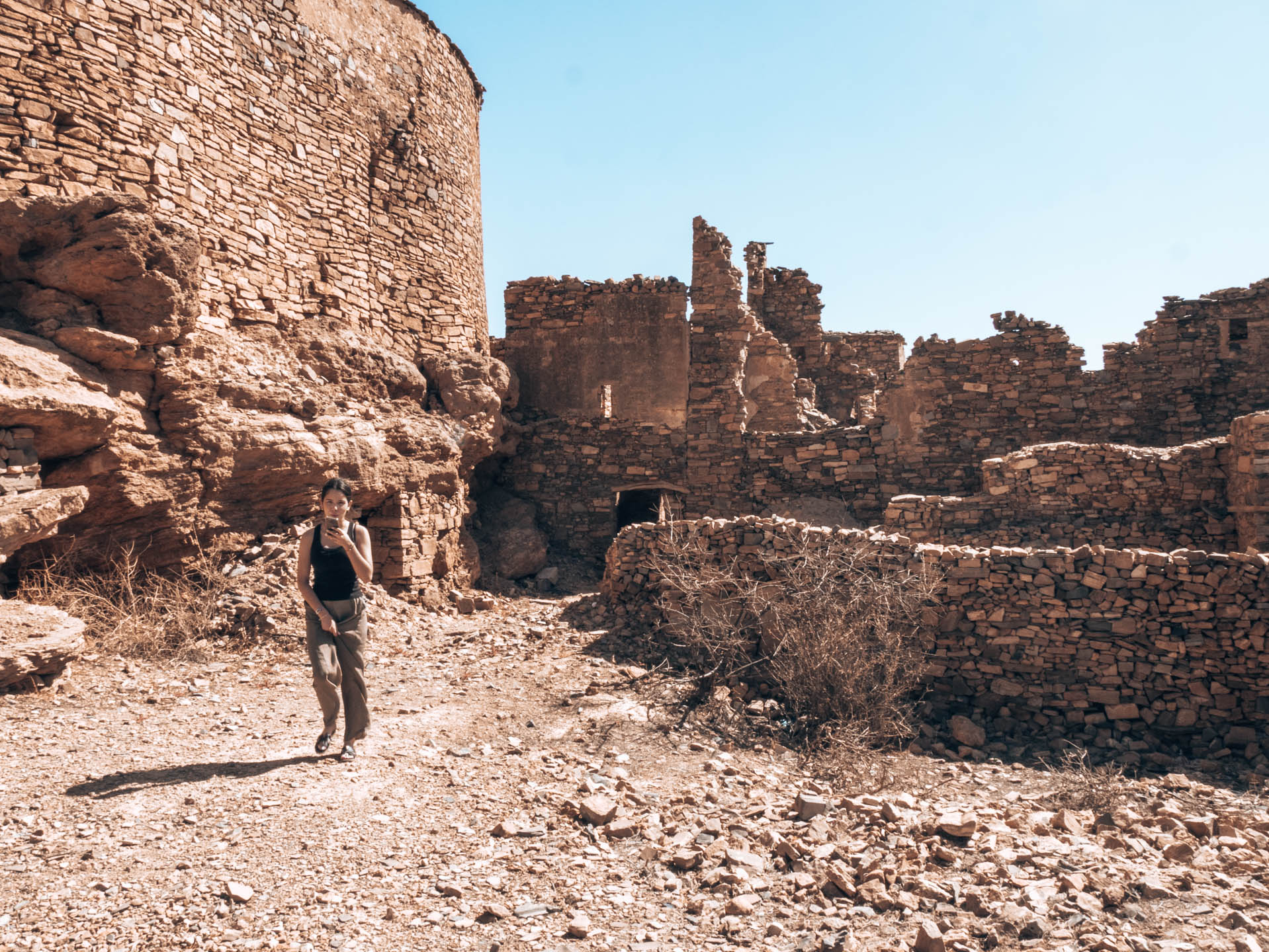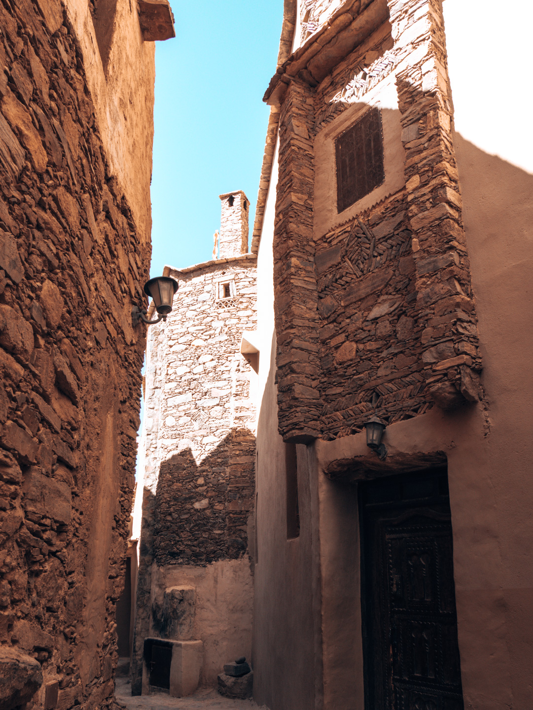 Pour le premier, l’agadir Imhilen, c’est une immense déception. Comme toujours le village est vide, aucune indication pour nous aider. Comme on voit au loin une bâtisse de pierre abandonnée on tente notre chance.