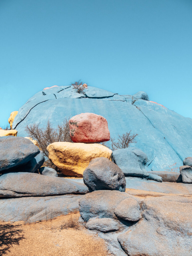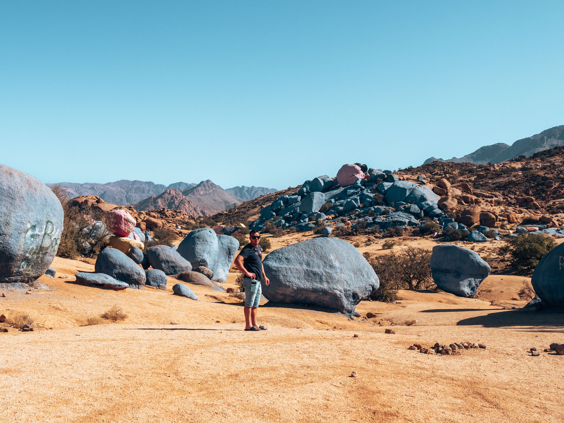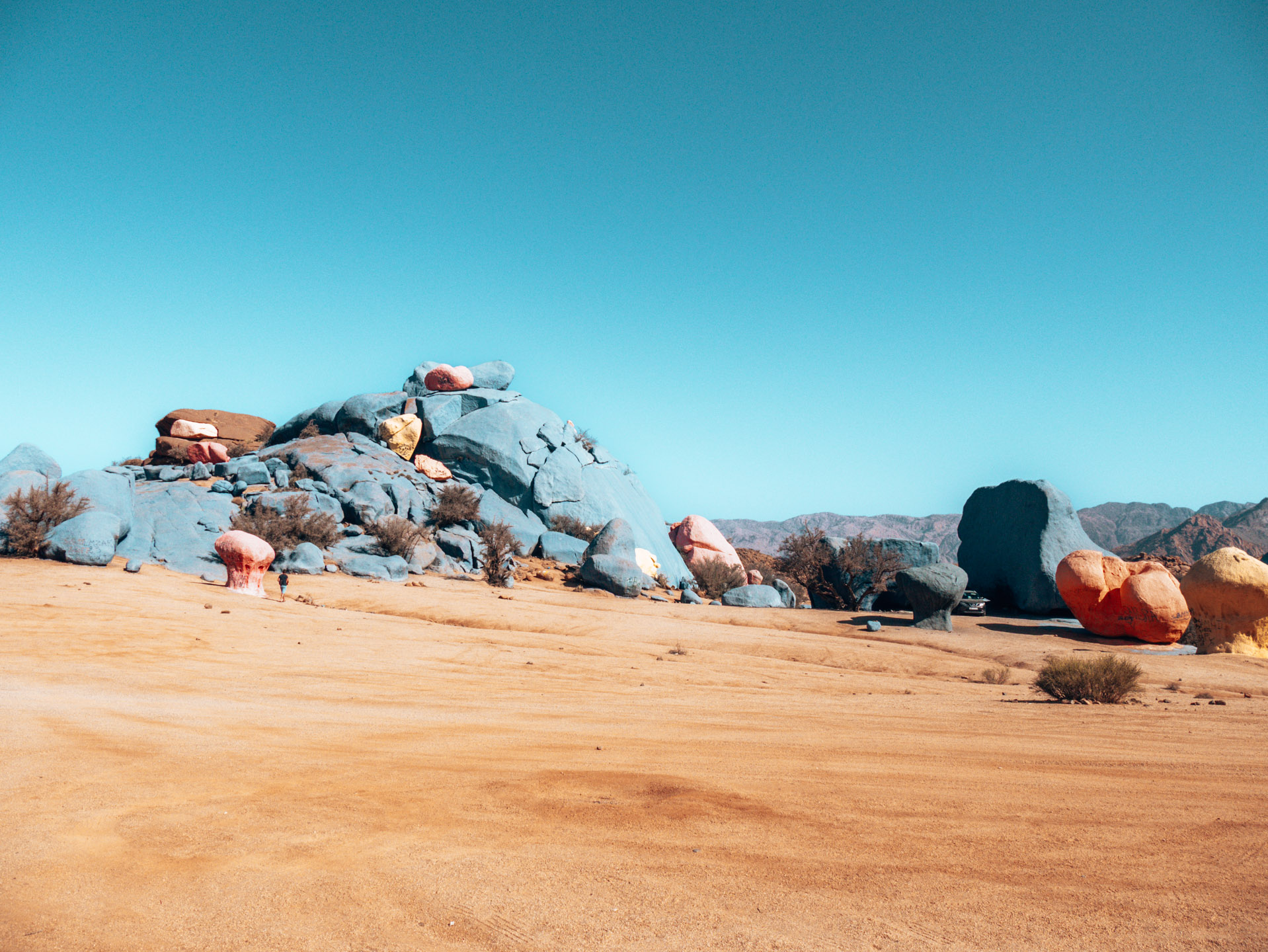 Première étape les roches peintes en bleu. La main de Dieu ni est évidement pour rien dans ce lieu insolite.
