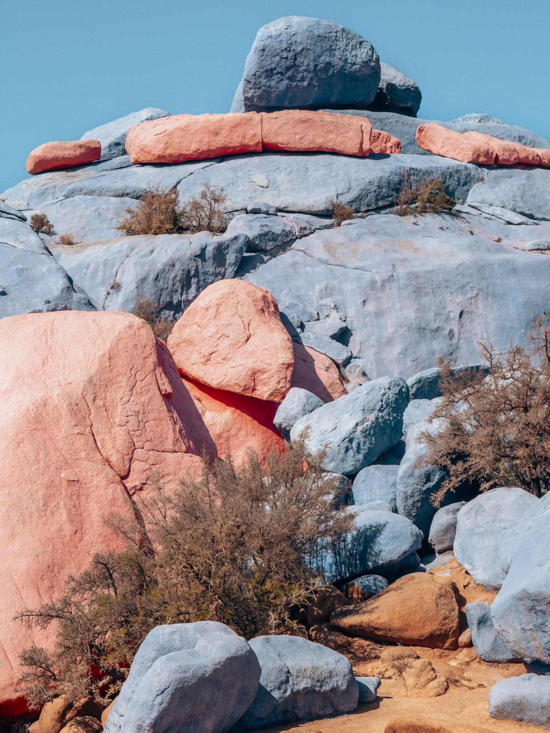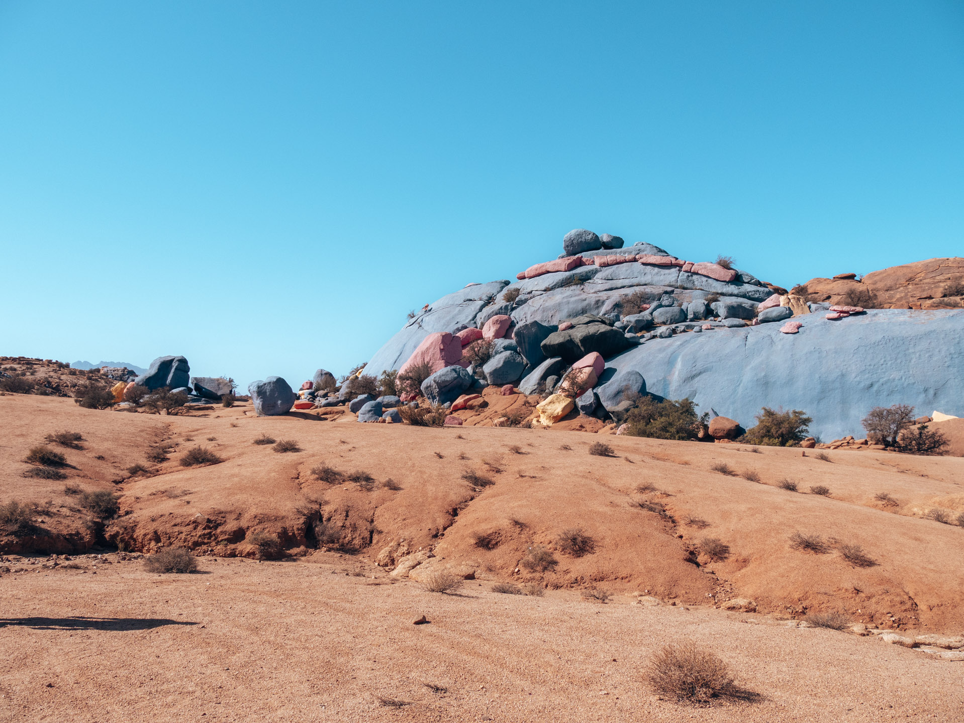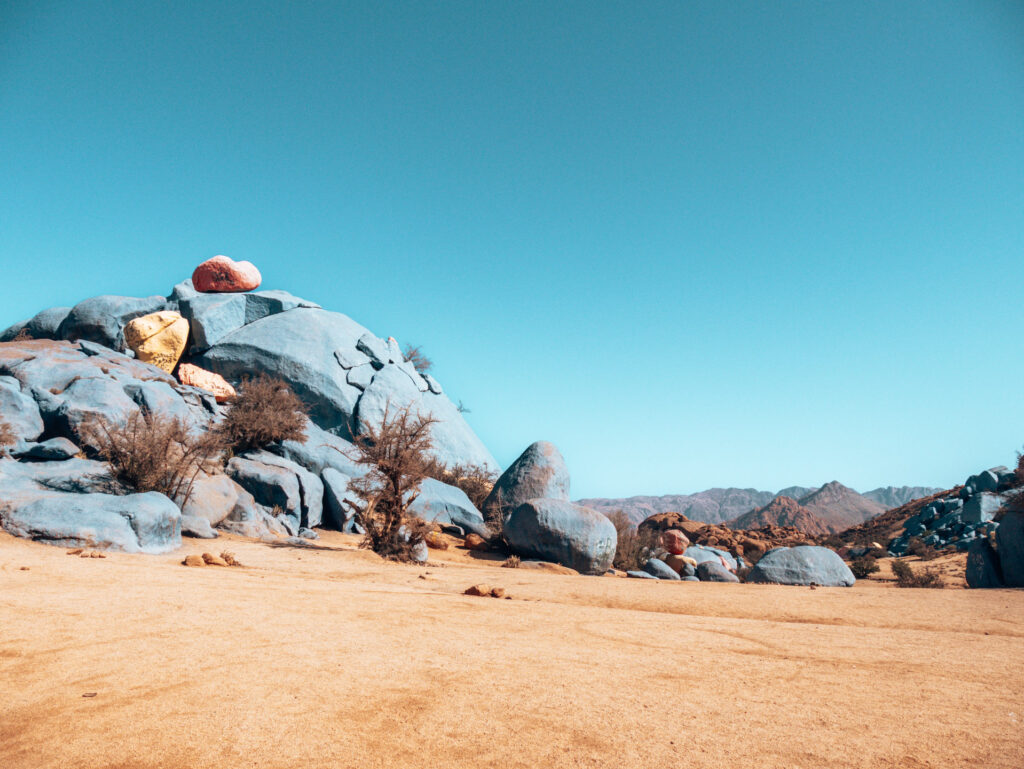 Première étape les roches peintes en bleu. La main de Dieu ni est évidement pour rien dans ce lieu insolite.