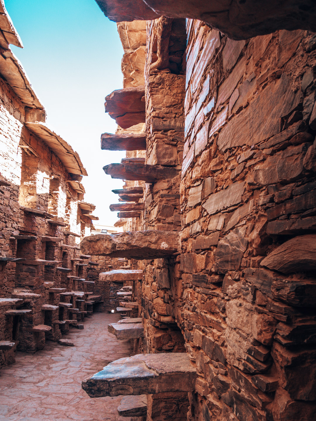 Sur 3 niveaux, de simples pierres plates incrustées dans la roche en guise d escalier, chaque cavité est fermée par une porte avec une serrure antique à clé unique.