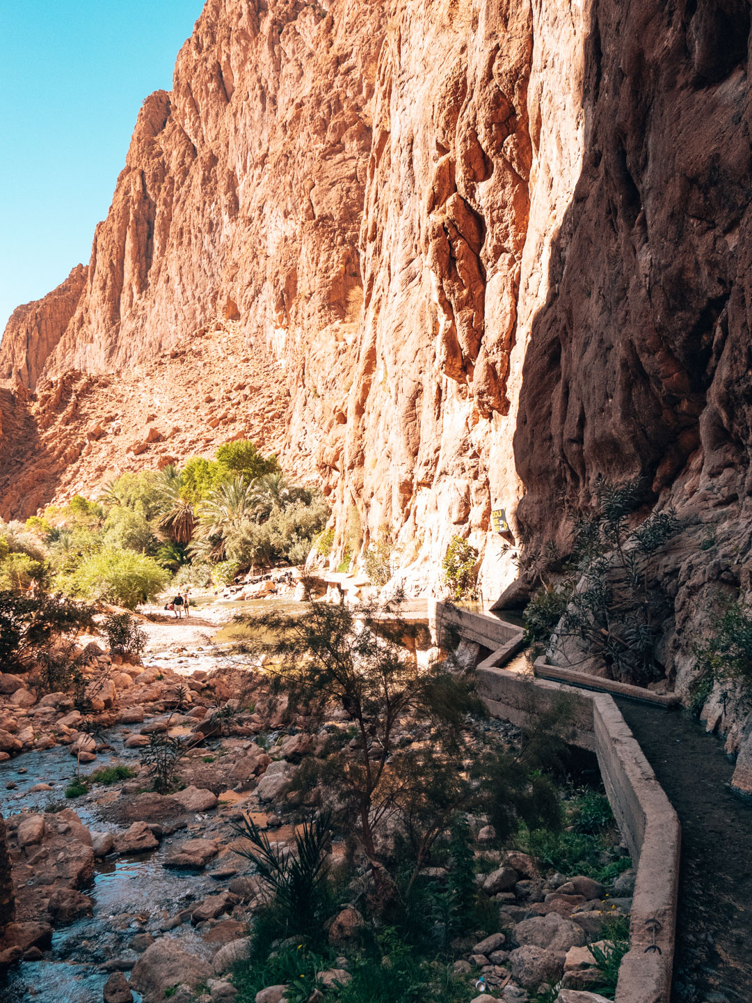 Toute la partie récente de Tinghir n’a donc que peu d’intérêt. Toute sa beauté réside dans la partie plus ancienne construite en bord de l’oued. La palmeraie est verdoyante, les cultures foisonnent et les canaux d’irrigation charrient une eau claire et abondante. Une première depuis notre voyage.