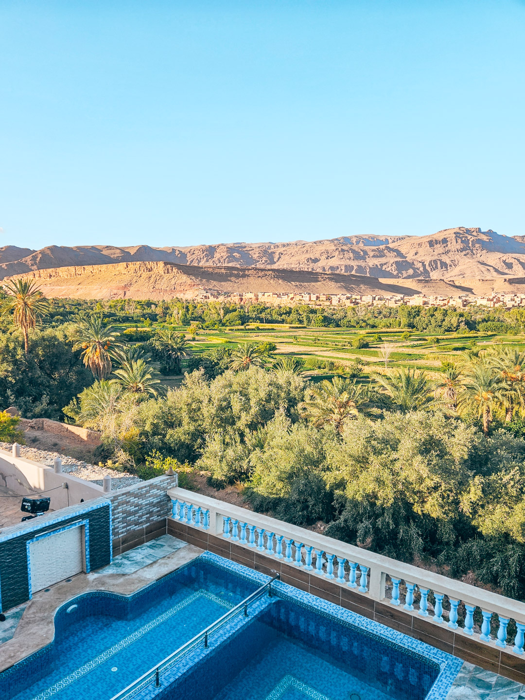 On loge dans un charmant hôtel familial en bord de la palmeraie et la vue est époustouflante 🤩