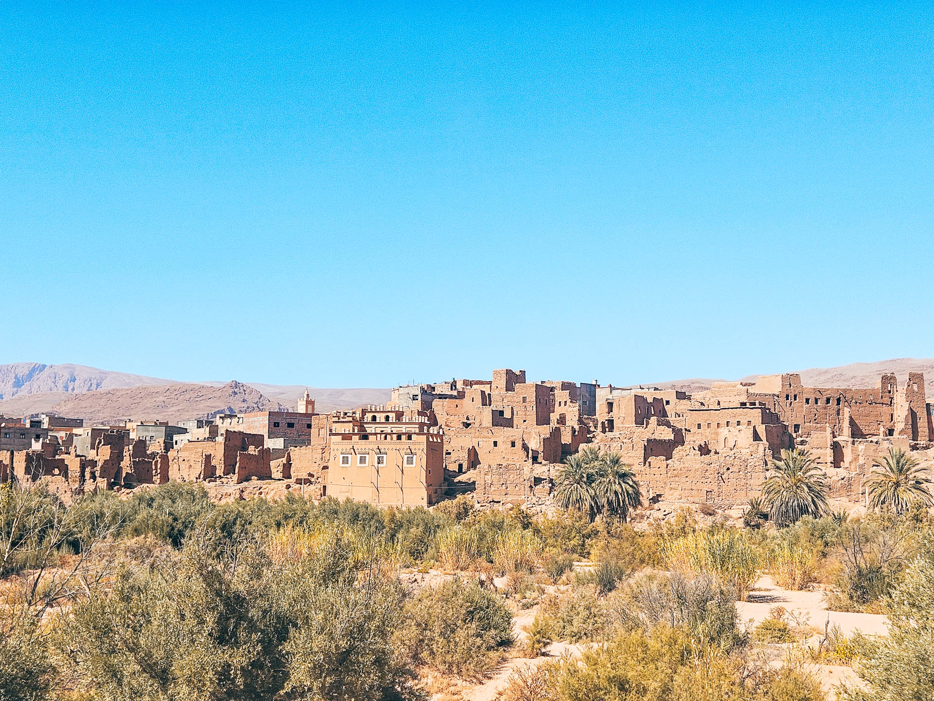 En allant vers Tinghir, notre dernière étape avant le Sahara, on se rendra compte que c’est toute la région qui est bâtie sur le modèle de Skoura.